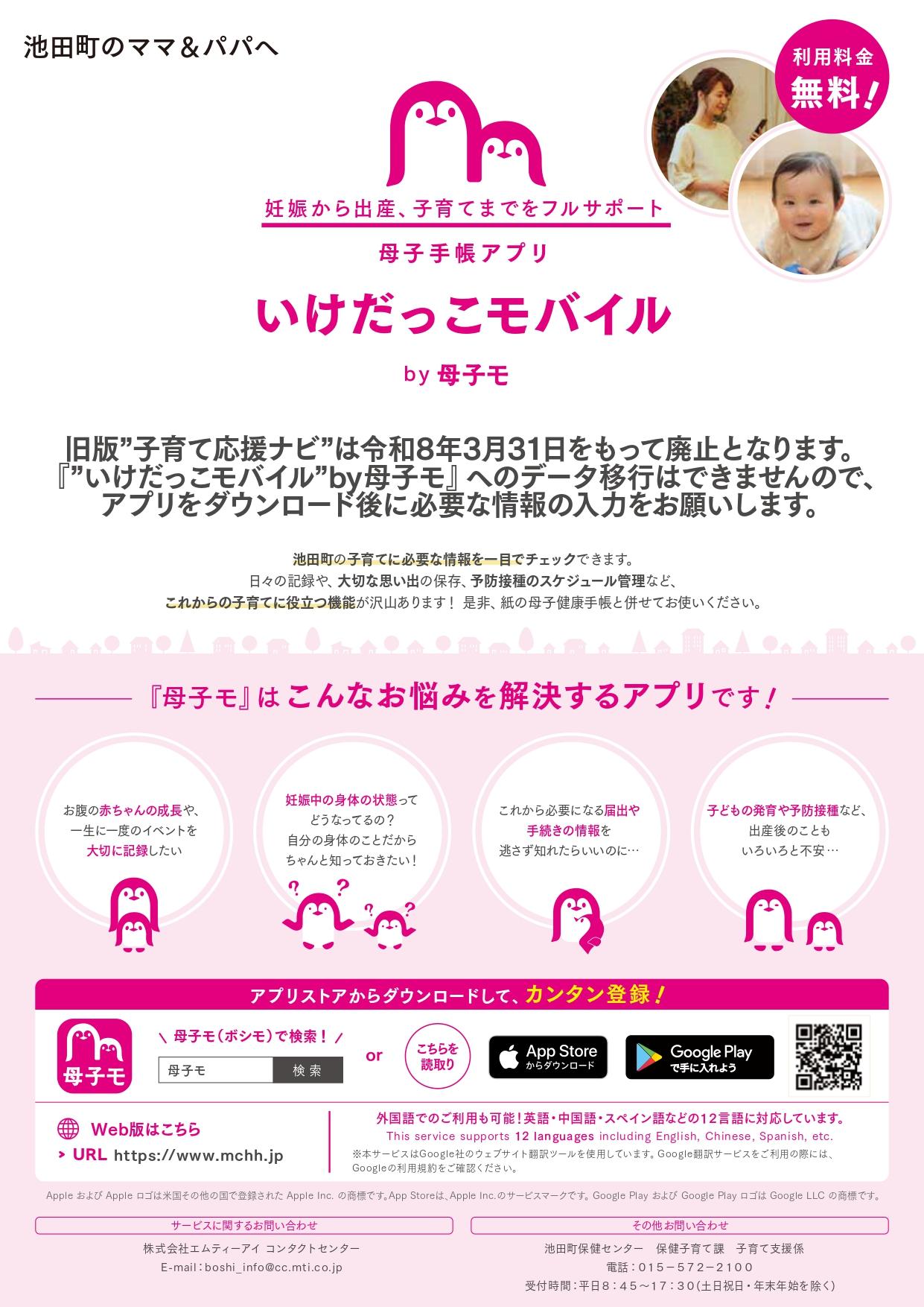 新たに母子手帳アプリ「いけだっこモバイルby母子モ」のサービスを開始しています。